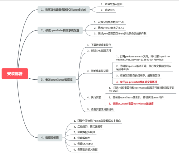 内容描述 本实验主要内容为弹性云服务器(操作系统为 openEuler)上单机安装部署 openGauss 数据 库,并进行简单的数据库相关操作。
