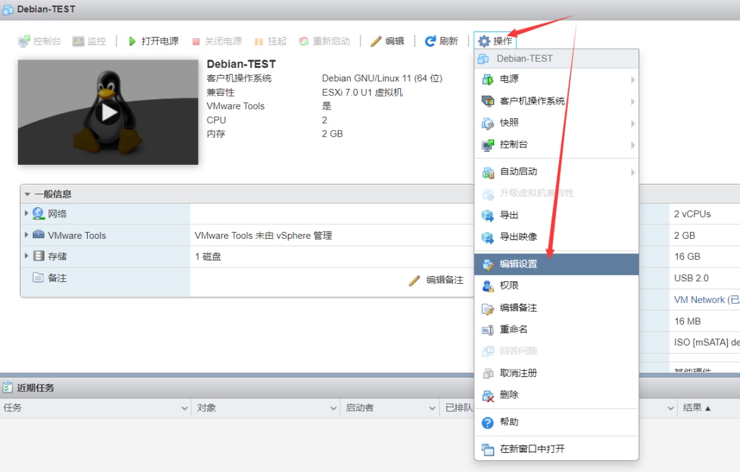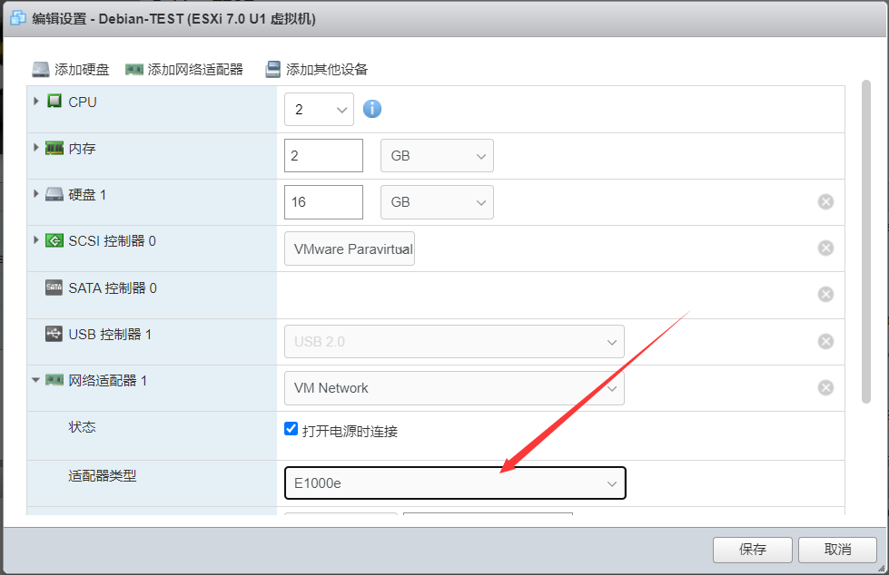 具体表现:Debian系统已启动,ESXi的浏览器窗口也正常输出登录界面且可以正常登录到Debian11,但路由器里找不到Debian11虚拟机的IP。解决方案:不断重启虚拟机,直至可以SSH连接Debian11虚拟机。如果一直连接不上,先关闭虚拟机,然后点击“操作”-“编辑设置”:将适配器类型改成“E1000e”之后,再开启虚拟机就可以使用SSH连接Debian11虚拟机了。上述操作只是暂时解决SSH不能连接Debian11虚拟机的问题,重启后大概率还是连不上。要想彻底解决这个问题,还需要给Debian11虚拟机设置静态IP。首先通过SSH连接Debian11,使用普通用户登录,然后输入“su”切换到root用户。输入如下命令:nano etc/network/interfaces注意:address设置成你想要设置的IP地址,netmask根据你设置的IP地址填写,gateway填路由器的IP地址即可。保存后退出就完成了静态IP地址的设置。上文提到将适配器类型改成“E1000e”,你也可以在设置了静态IP地址后改回原来的设置。