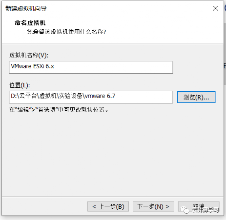 2.2.4 虚拟机名字的设置和安装位置的选择。你可以修改虚拟机的名称和虚拟机放置的位置,在这里我们可以将它放置在我们之前创建的文件夹里面。然后点击下一步。