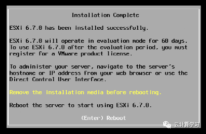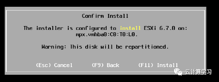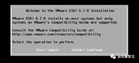 2.2.7 点击完成后就开始进行安装了,一段花里胡哨的画面以后就成这样子了。按ESC键就是取消,Enter确定就是继续。所以咱们直接Enter确定继续吧。