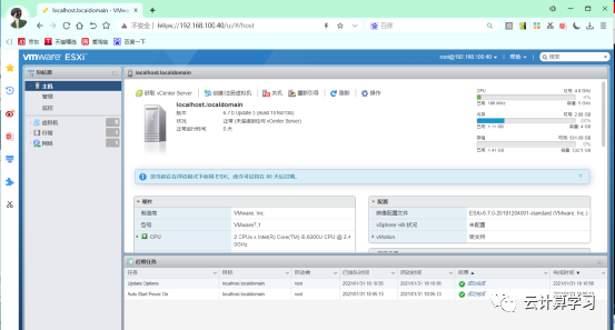 4.3点击登录后,会连接你的ESXi主机。便于管理。