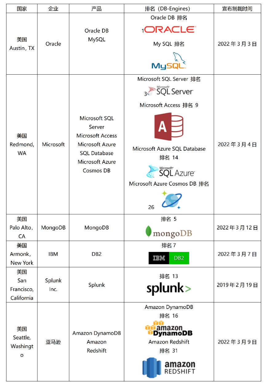 多家数据库企业停止在俄罗斯的业务,同时乌克兰总统敦促这些科技企业加大制裁力度,表明数据库产品作为基础软件的重要性。