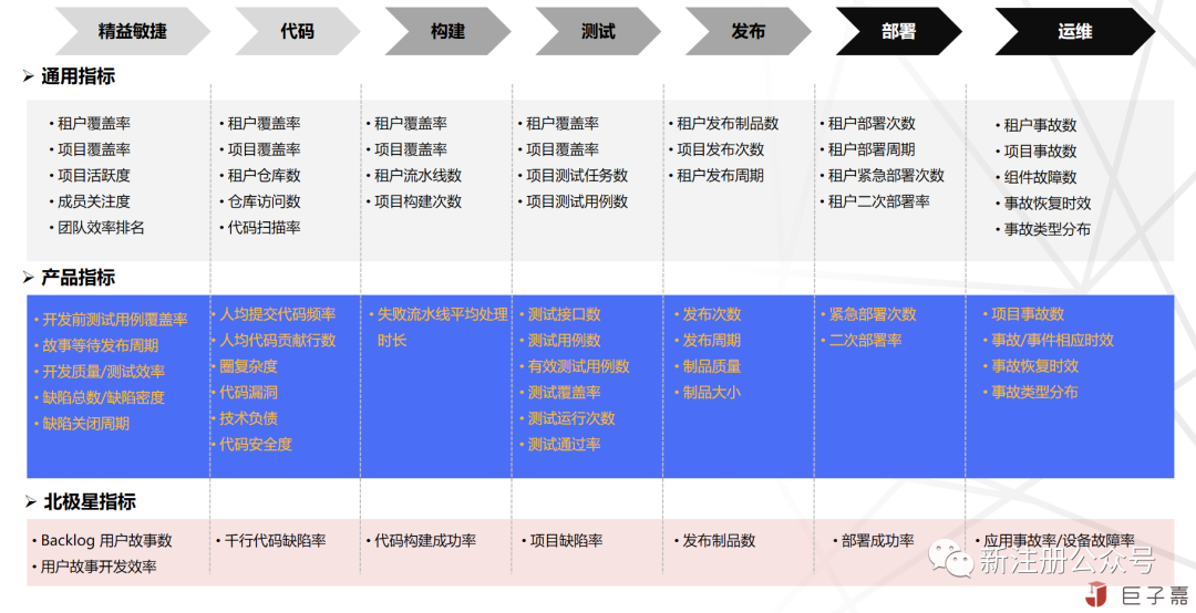 云原生DevOps作为软件的源头工程,可以将软件研发过程本身的数据,软件运行的运维管理数据,以及软件业务运作数据,通过大数据技术汇聚分析,通过指标数据量化软件全生命周期的过程,驱动全过程优化改进,实现软件功能交付及软件价值交付的双线统一,驱动研发效能提升,产品质量的提升,甚至辅助业务决策。
