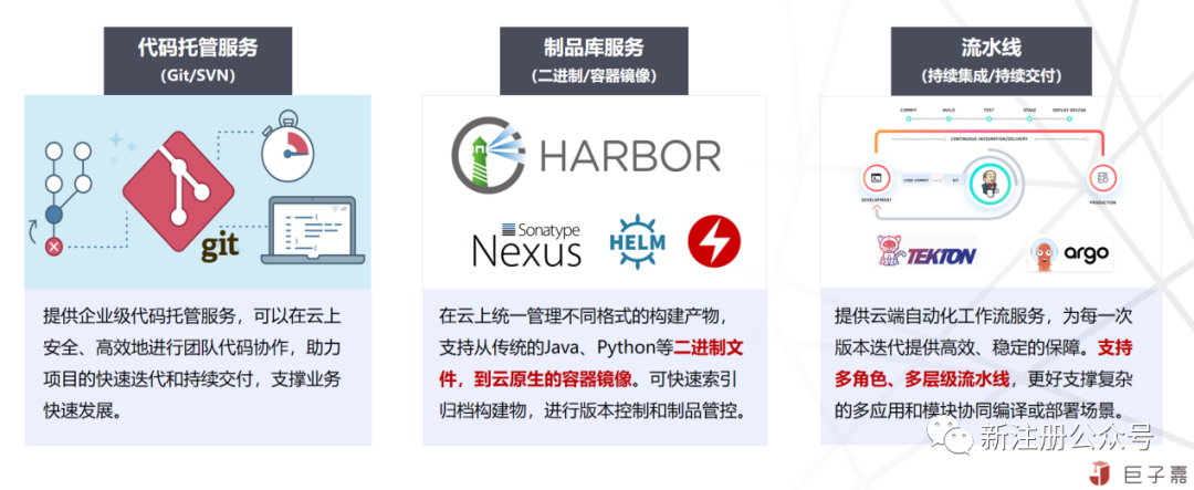 代码托管,制品库,流水线服务这三个产品是研发一体化的基础产品,是用来保障研发过程中的数字化资产的唯一抓手,也是研发一体化首选核心产品。