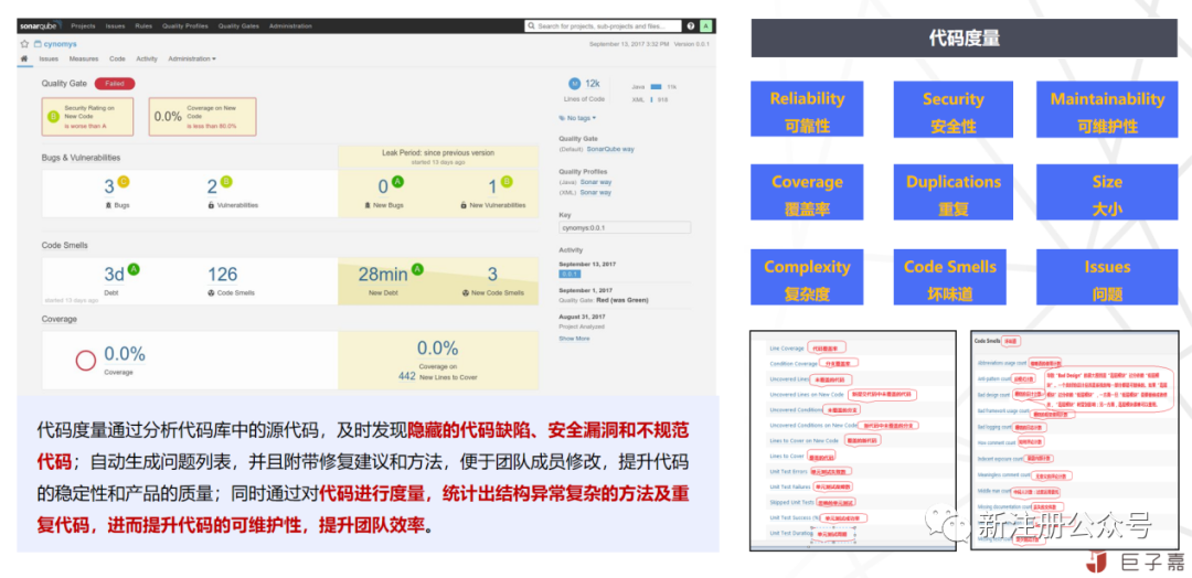 9大维度指标,包含了可靠性,安全性,可维护性,覆盖率,重复率,代码行数,复杂度,代码坏味道,问题等,覆盖了代码质量的各个方面,通过自动化的流水线无缝集成,可以实时的掌握代码质量情况。