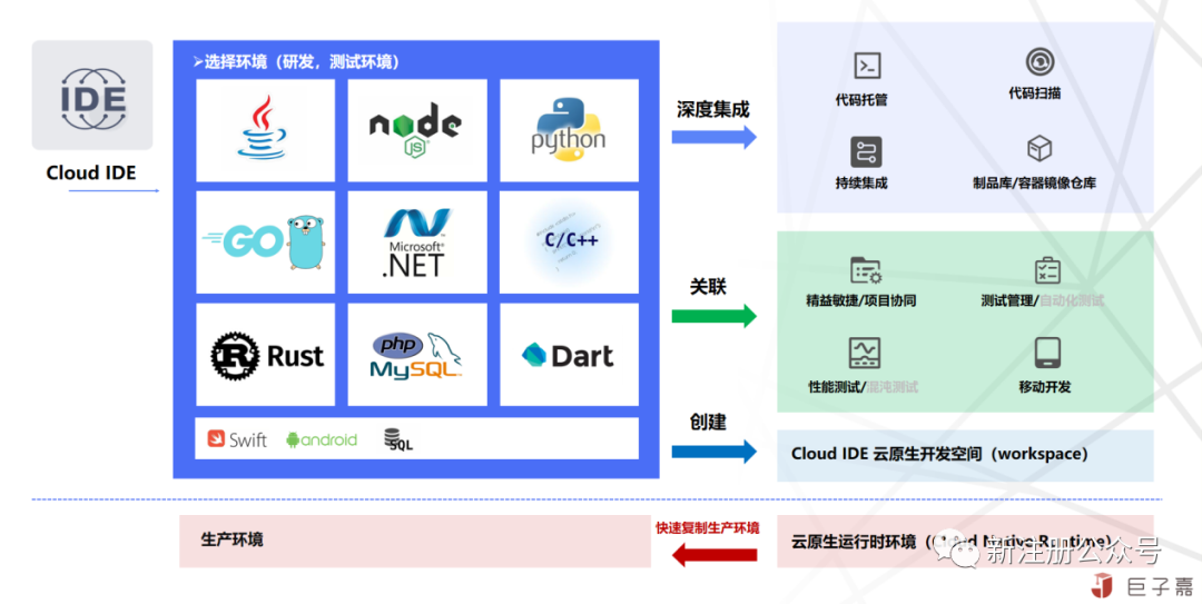 Cloud IDE是DevOps理念与云原生相融合的大成者,解决了研发上云最后一公里编辑器上云的难题,是彻底实现研发一体化,研发上云的关键产品;产品借助云原生技术实现重大突破,将本地研发环境全部迁移至云端,秒级创建强一致性的研发环境。同时深度集成数据资产管理工具及部分专业提效工具,打通关联研发过程管理工具,实现研发全过程上云,在云端高效协作。