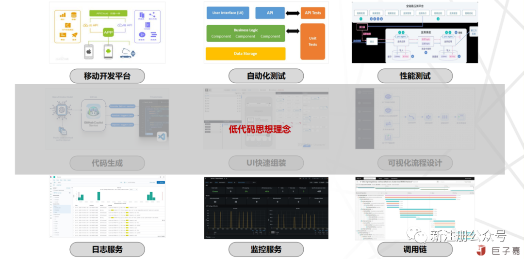 针对专业的提效产品,包含有移动开发平台,自动测试平台及性能测试平台;同时也结合当前最热门的低代码的理念,围绕低代码建设一些一键生成代码,可视化编排的产品。