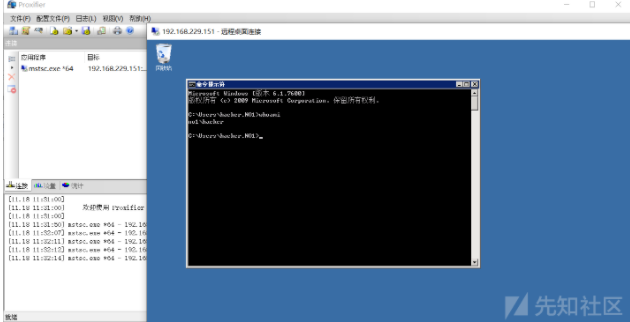 5、成功进行内网穿透,通过远程桌面连接到目标主机。