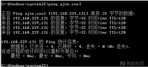 通过ping 域名称来获取域服务器的IP地址。(也可以通过查看dns服务器的IP地址,结合进行判断域服务器的IP地址。)
