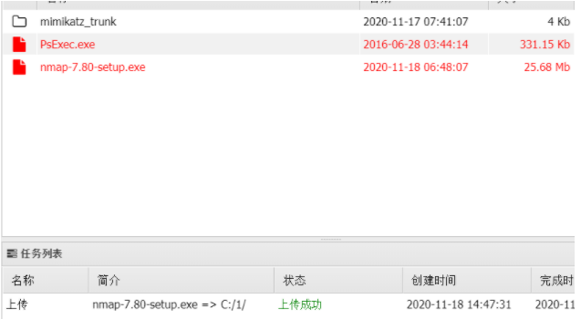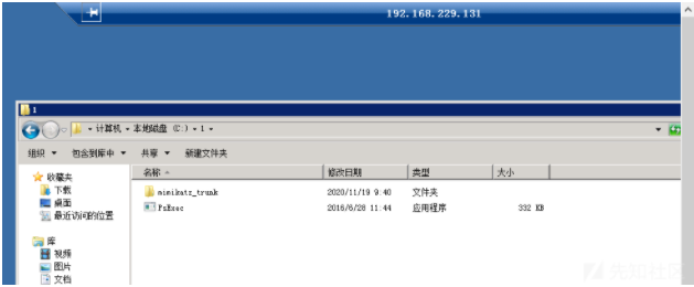 1、首先通过远程桌面将mimikatz.exe和PsExec.exe上传到域控主机。