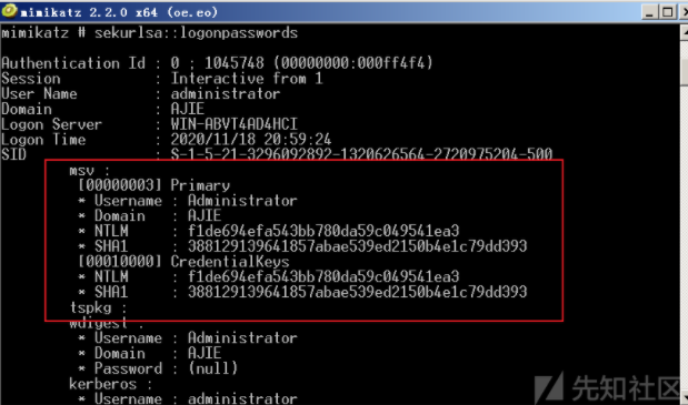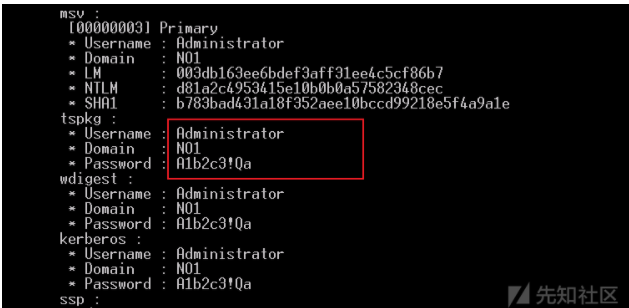 2、这里虽然没有获取到明文密码,但是获取了域管理员用户的NTLM。