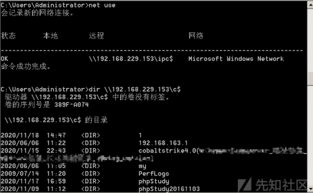 在内网中,默认就会开启IPC$共享文件服务,默认会将C盘共享出来,也就是说,我们可以通过IPC获取目标C盘的权限。