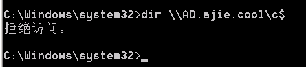 5、制作完票据之后,先尝试获取域控的c盘的权限发现拒绝访问。