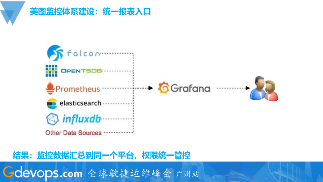 因此,统一将收纳到Grafana的监控数据源全都归纳进来,解决了上述问题。Grafana目前是我们在做监控数据可视化的一个事实标准,常用的数据源大都是支持的,使用起来非常便利。(当然也还是有些数据的可视化、数据查询能力是不及原生UI的,我们会组合使用,比如Elastic的Kibana。)我们把之前散落的监控数据汇总到了同一个平台做展示,去做统一的权限管控,之前散落、割裂的情况得到了一定的改善。