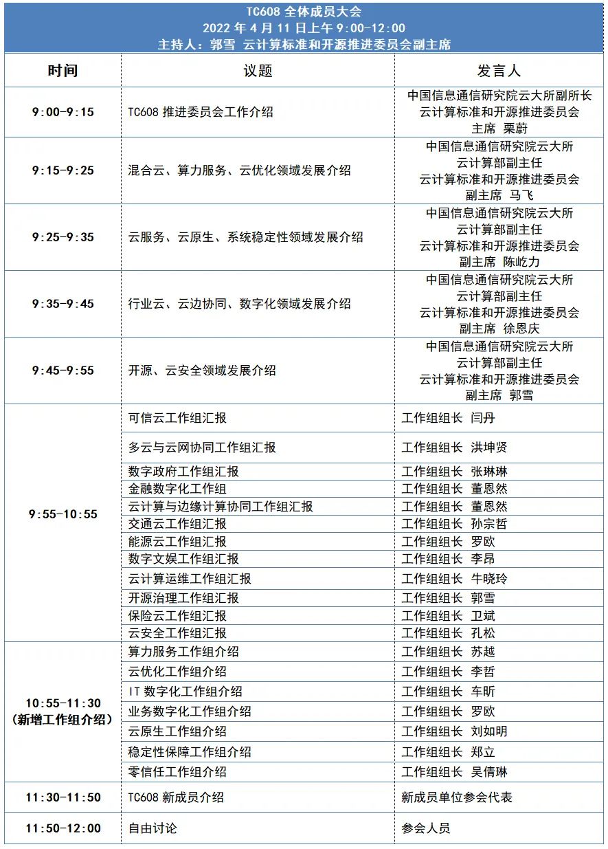 云计算标准和开源推进委员会将于4月11日-12日召开CCSA TC608 2022年第一次全体成员大会及工作组会。受疫情影响本次会议采用线上腾讯会议的方式召开,会议期间各个工作组将开展相关议题讨论,会议将介绍云计算标准和开源推进委员会各工作组的工作情况及计划,并听取各成员单位的工作意见和建议。诚邀您拨冗出席。