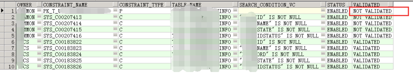 NOT VALIDATED状态的约束问题已经久的不知道为什么当初要设置成这样。