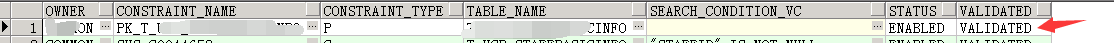 alter table ******* modify constraint ***** VALIDATE; (会进行数据校验)顺利的执行成功了,也就是说表中主键列已经不存在重复数据或空值了
