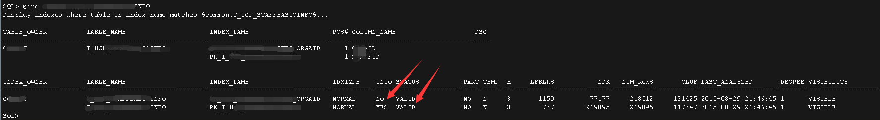 查询该表的索引和约束情况发现该表竟然有唯一索引,且索引状态也都是valid的,但为什么OGG并没有使用唯一索引作为KEY呢?
