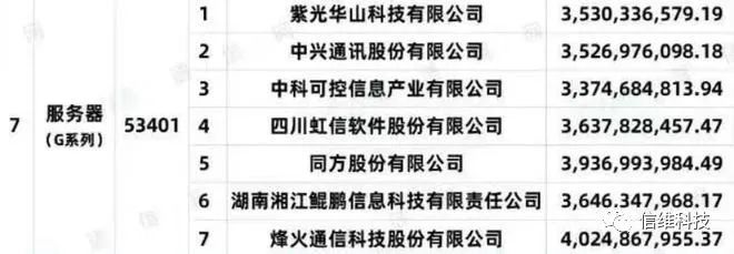 标包7:服务器(G系列)中标候选人分别为紫光华山科技有限公司、中兴通讯股份有限公司、中科可控信息产业有限公司、四川虹信软件股份有限公司、同方股份有限公司、湖南湘江鲲鹏信息科技有限责任公司、烽火通信科技股份有限公司。