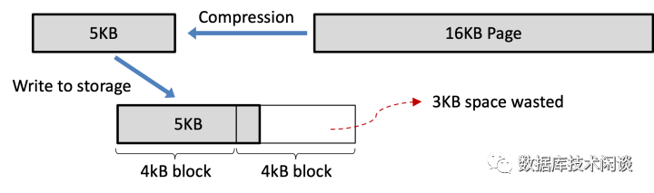 Figure 3: An example to show the storage space waste caused by 4KB-alignment constraint for B+ tree page compression.