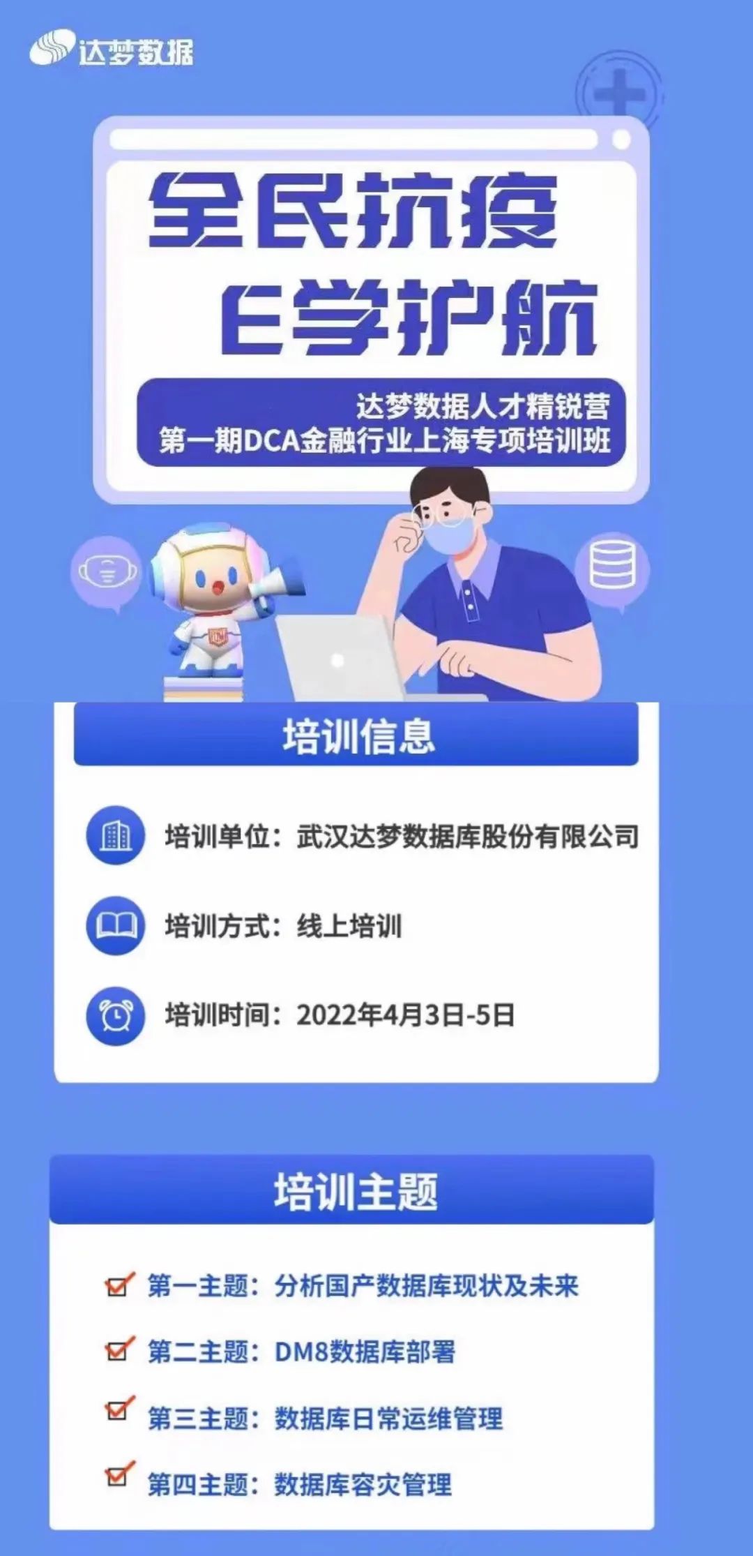 近日,全国多地上万名医务人员驰援上海,朋友圈被守“沪”者们刷屏。距离上海实施封控管理已过去一周,即便在疫情最艰难的时刻,这座城市仍然有人在奔跑、在努力、在守“沪”,无数金融IT人“逆行而上”坚守岗位,这其中也有达梦数据的身影。