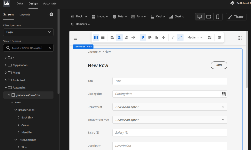 下面是我使用 Budibase 建立一个样本应用跟踪系统时的情况: