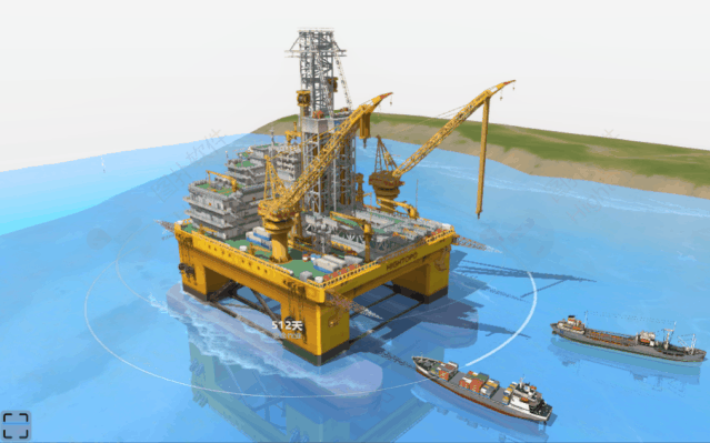 而 HT 将三维动画与工业化领域相结合,使场景中各设施具有更加灵活的表现形式和直观生动的可视化效果,生动的动画演示便于工程师迅速理解和制定海上作业的施工流程,同时实时、直观呈现出海上施工的工作环境信息,可辅助管理人员及时做出准确决策,实现对整个施工项目科学、有效的管理。