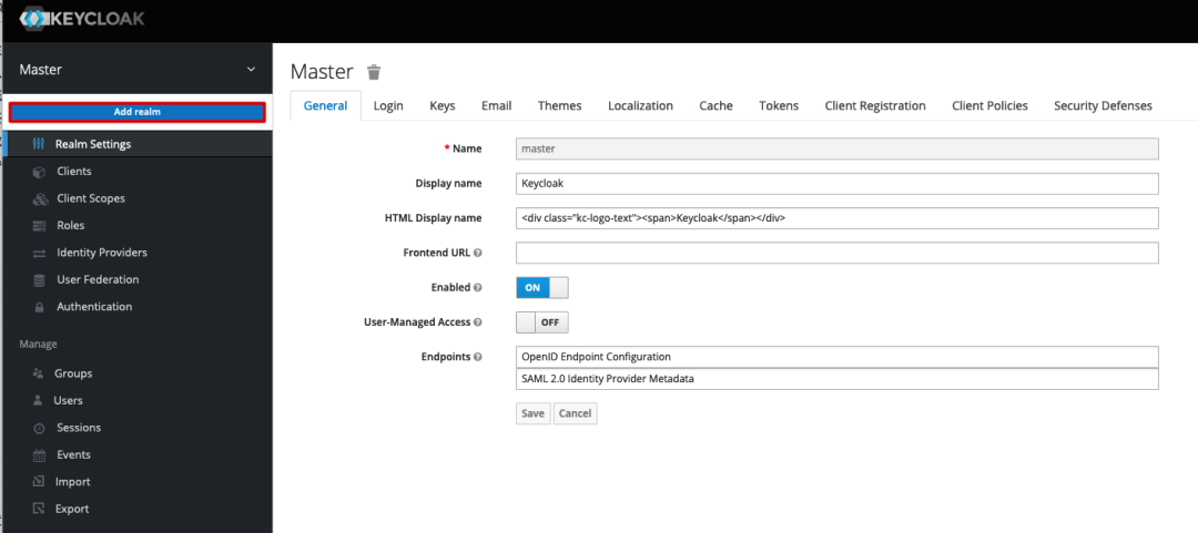 • 领域(realms):领域管理着一批用户、证书、角色、组等等,不同领域之间的资源是相互隔离的,实现了多租户的效果。
