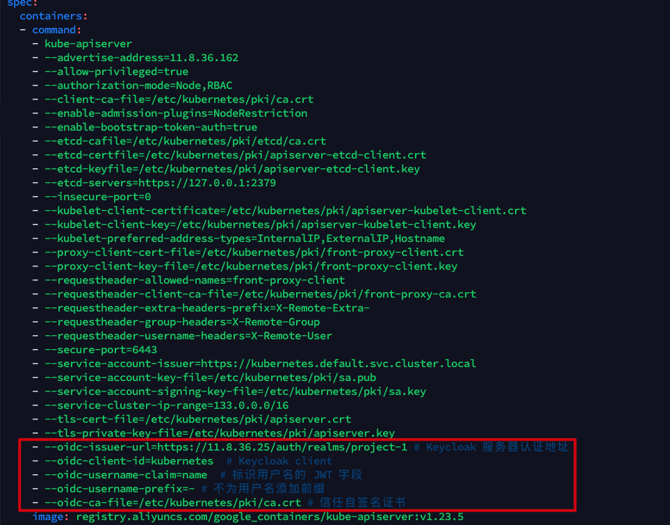 --exec-arg=--oidc-issuer-url=https://11.8.36.25/auth/realms/project-1 \