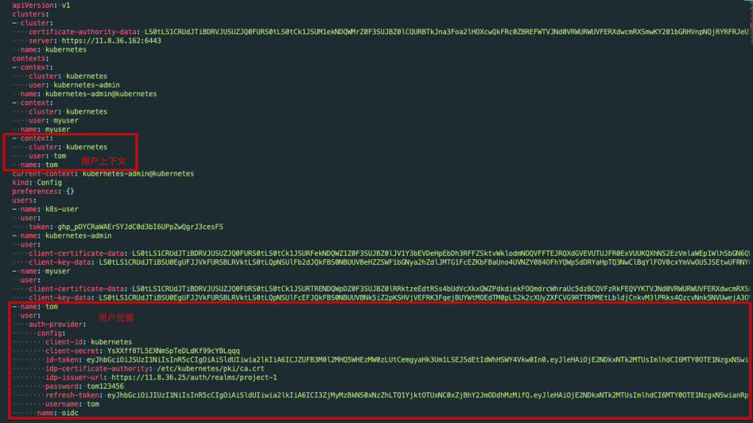 接下来使用以下命令在 kubeconfig 文件中为用户 tom 添加新的凭据,idp-issuer-url