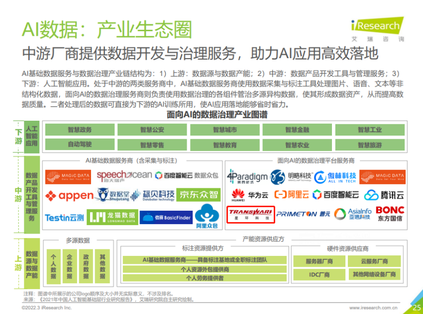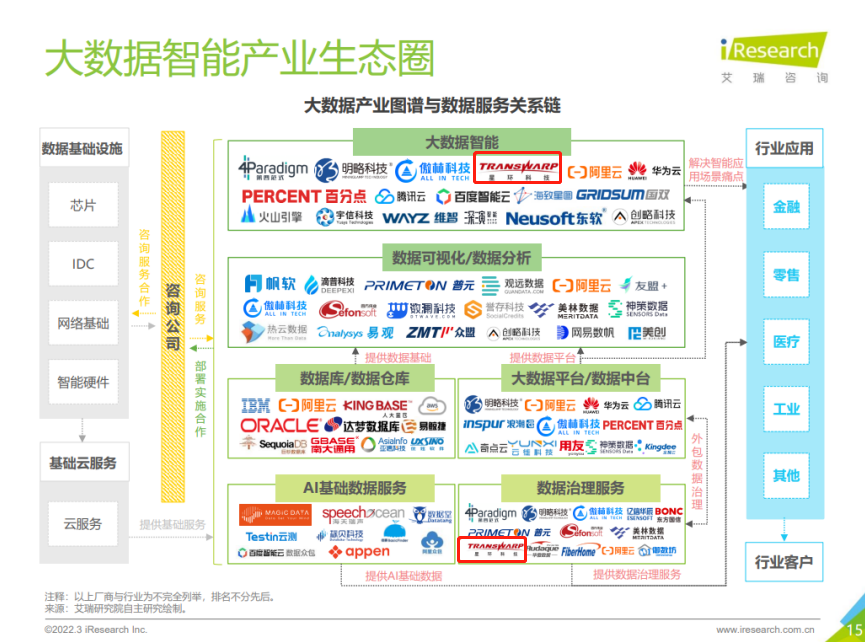 近日,艾瑞咨询发布了《2022中国面向人工智能的数据治理行业研究报告》(以下简称报告),星环科技凭借在大数据和人工智能领域的技术优势、强大的数据治理能力以及众多行业应用案例,成功入选。该报告聚焦数据治理,在AI技术创新应用和AI数据需求引发二次治理的趋势背景下,推出“面向人工智能的数据治理”概念,选择金融、零售、医疗和工业四大典型行业为切入点,分析呈现各行业的信息化建设阶段与高频高价值的AI应用场景,并基于高频高价值AI应用引发的数据治理需求,对面向人工智能的数据治理体系搭建给到建设指导。星环科技作为一家企业级大数据基础软件开发商,坚持自主研发与技术创新,围绕数据的集成、存储、治理、建模、分析、挖掘和流通等数据全生命周期提供基础软件及服务,已形成大数据与云基础平台、分布式关系型数据库、数据开发与智能分析工具的软件产品矩阵。在数据治理方面,星环科技能够从数据标准管理、数据质量管理、数据模型管理、数据架构管理、元数据管理、主数据管理、数据分级与安全管理等多方面,提供数据治理解决方案,帮助客户更好地实现数字化转型。数字经济时代,数据的价值越发被重视,数据治理作为提炼数据价值的重要方法,发挥着重要作用。星环科技还将一如既往发挥自身技术优势,赋能企业实现高效的数据治理,提升数据价值,为各行各业数字化转型提供动力引擎。