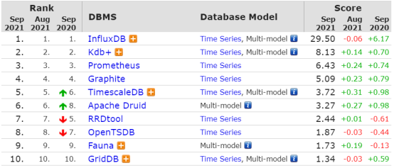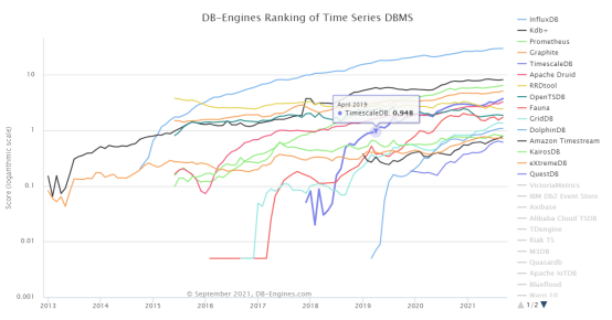 今天的主角TimescaleDB在DB-Engines中排名的处于第5位,并且在增长状况上一直处于上升的趋势,其中不乏PostgreSQL的占有率提高而导致其增长的一部分原因,因为本质上它是PostgreSQL的一个插件,除了其本身丰富强大的功能外,TimescaleDB 完全支持 SQL 且拥有 PostgreSQL 的丰富生态。