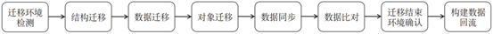迁移环境检测包含主机环境检测、网络环境检测和数据库环境检测。结构迁移是指将源数据库的建表语句迁移到目标端不同数据库中,迁移完成保证源、目标数据库中的建表语句功能、性能等价使用。数据迁移分为全量数据迁移和增量数据迁移。迁移结束环境确认需要重建序列、启用触发器和收集执行计划等。构建数据回流是为保证业务迁移后目标数据库切换为生产库出现故障无法持续对外提供业务时,保证目标端已经变化的数据能够迁移回流到原来的生产库,并保证业务不中断。