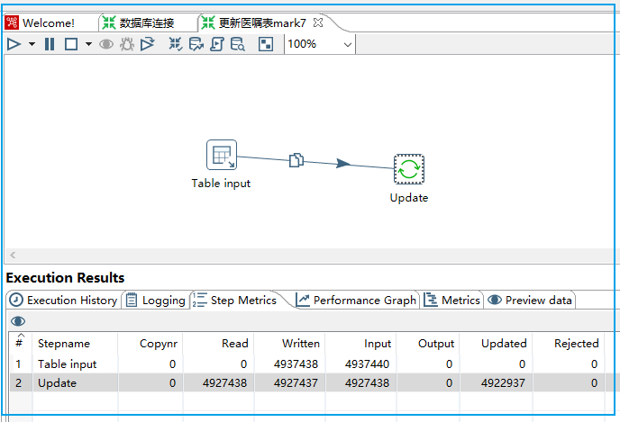 于是放弃 update 方案,尝试使用小步更新方式来写入数据。最终在测试库中的尝试的方案是使用 ETL 工具 Spoon ,辅助临时表对目标表执行 update。ETL 工具有小批量更新的机制,不会造成长时间锁表,但执行时间会拖的比较长。