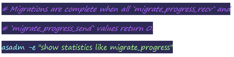 在您停止其中一个节点之前,验证集群没有迁移数据。运行以下命令检查迁移状态: