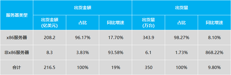 2020年中国服务器市场出货统计(数据来源:资产信息网)