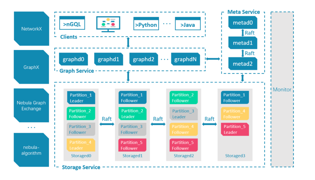 分布式高可用,保证业务连续:Nebula Graph 采用全对称分布式集群,无单点故障;基于 Raft 协议保证容错能力及高可用;同时支持多种类型快照方式实现数据恢复,保证在局部失败的情况下用户无感知和服务高可用。