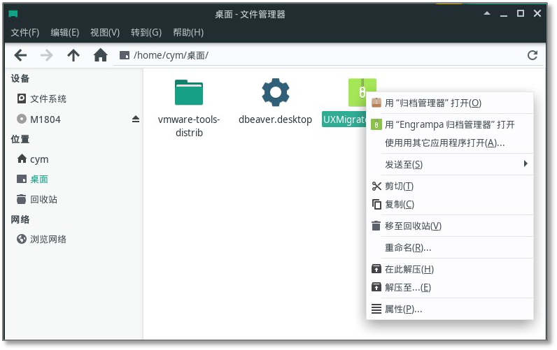 2. 右键解压压缩包UXMigrator.tar.gz。