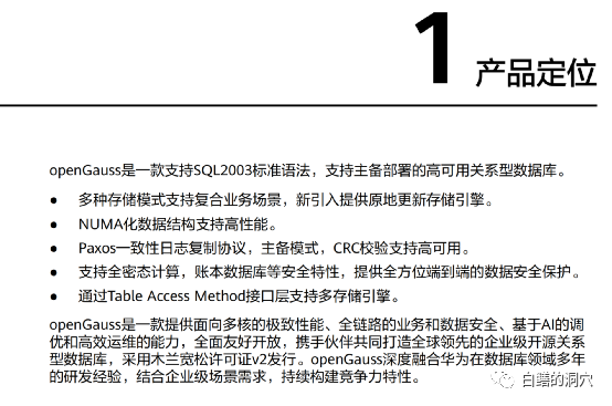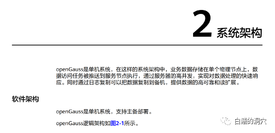 再看系统架构那就更明确的说了,openGauss是单机系统。看样子openGauss是分布式数据库的说法有点不靠谱,那么为什么发布会的海报上会这么画呢?于是我在网上搜到了发布会宣传资料的原文。