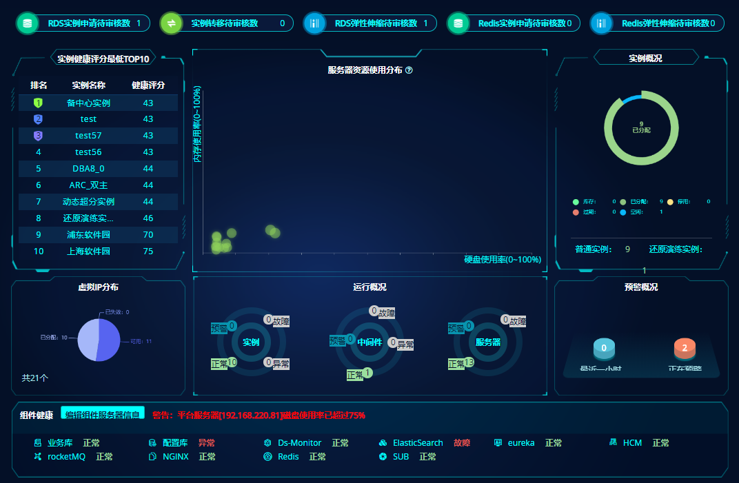 HotDB Cloud是一款即申即用、弹性伸缩、资源池化和数据库全生命周期管理的关系型云数据库服务产品,实现服务器资源池化、数据库资源池化、资源分配智能化 、资源弹性伸缩、资源隔离、安装部署自动智能、RPO为零的数据高可用、RTO亚秒级的服务高可用、读写分离、SQL审计、危险SQL拦截、数据回收站、SQL智能优化、智能逻辑大屏、智能监控、智能备份还原、智能还原演练等功能,以服务方式向企业用户输出。做到数据库从资源申请、交付、运行到维护保障的全生命周期智能自动,及实现企业数据库服务的智能自治。