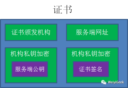 证书颁发机构自己也有一对公钥私钥。机构利用自己的私钥来加密Key1,并且通过服务端网址等信息生成一个证书签名同样经过机构的