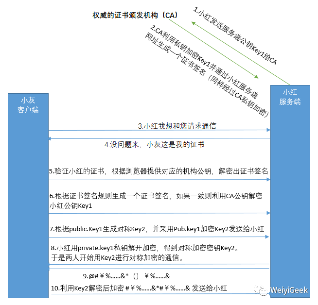 后述:如果让我回到十年前,那么我一定会这样跟我的女朋友传纸条:先准备一张独一无二的纸条,并在上面签上我的大名(CA颁发证书-确定是否是本人),然后用只有我女朋友可以解密的方式进行数据加密,最后写完后用胶水封起来(防篡改)),防止隔壁桌的小王偷看修改小纸条内容。