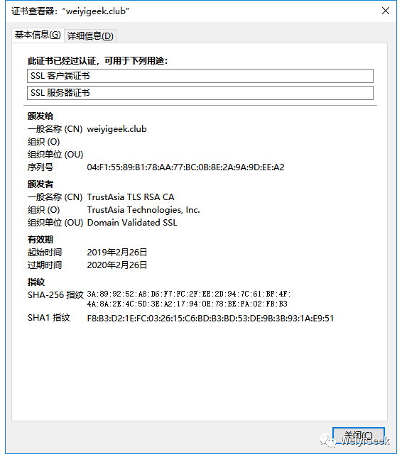 最后查看网站的证书情况(以我的blog.weiyigeek.top网站为例), 下面club是我的旧域名