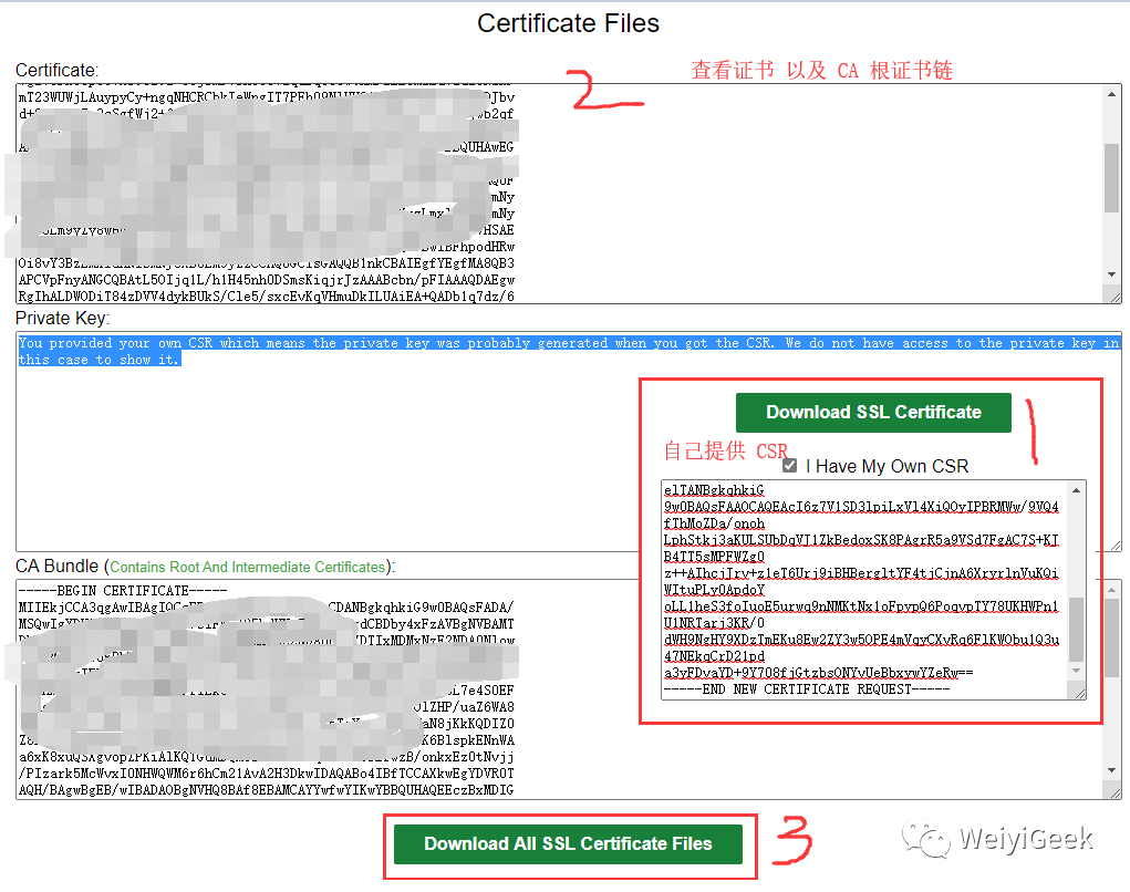 ;(2) 如果是自己提供的证书则下载的时候不包括密钥,因为在您生成csr文件过程中就会产生密钥文件(