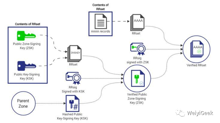 简单的说,DNSSEC依靠数字签名保证DNS应答报文的真实性和完整性。