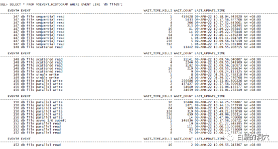 说完优点,我们就要说说缺点了,Oracle在v$event_histogram中保留了非零等待事件的直方图数据。