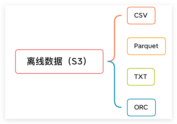 我们的广告平台的数据,包括实时数据和离线数据。实时数据首先会发送到消息系统,然后在消息系统中进行流转批,最终将转换后的数据存储在S3上,离线数据则直接调用S3的API将数据存储在S3上。S3上存储的数据格式有:CSV、TXT、Parquet、ORC等。