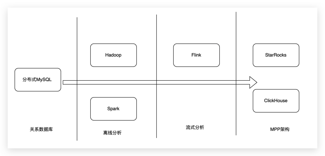 从上面的趋势中也可以看到大数据发展的阶段,第一阶段大家基于大型MySQL的分库分表实现大规模数据的存储和分析,但是随着数据量的增大,这个方案玩不转了。于是出现了Hadoop和Spark来解决海量数据计算问题。等海量数据计算的需求满足后大家又对数据的实时性要求更高了,业务总想看着最新的数据,于是出现了实时数仓。